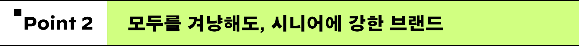 전 연령을 겨냥하지만 시니어에게 특히 강한 브랜드