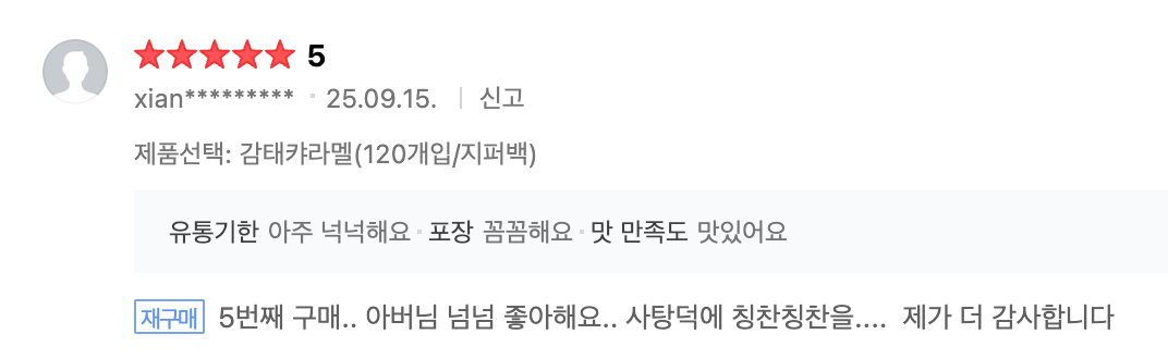 바다숲은 ‘감태의 일상화’를 목표로 다양한 제품을 선보이고 있는데요. 그중에서도 조청의 은은한 단맛과 감태 특유의 깊은 풍미가 어우러진 ‘감태 캐러멜’은 시니어 고객들에게 특히 인기입니다. 달라붙지 않는 부드러운 식감 덕분에 어르신들도 부담 없이 즐길 수 있는 간식으로 자리 잡았죠. |