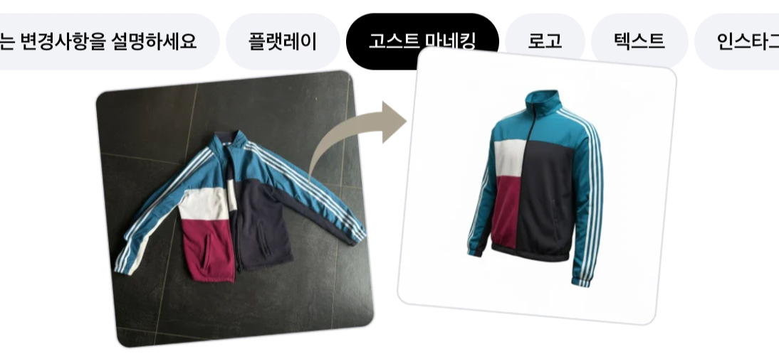 반대로, 대략적인 샘플이 이미 완성된 경우라면, 직접 촬영한 사진을 ‘포토룸’의 '고스트 마네킹' 기능으로 편집해보세요. 실제 마네킹에 제품을 입힌 듯한 입체적인 이미지를 구현해, 제품의 핏감과 구조를 자연스럽게 전달할 수 있습니다. 예산이 한정된 작은 브랜드라면, AI 도구들로 출시 전에 제품 형태 시각화와 고객 반응 수집을 한 번에 진행해 보는 건 어떨까요? 리스크를 줄이면서도 론칭 전 티저의 효과도 누릴 수 있으니까요. |