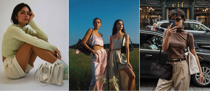 제품 사용컷을 확보하려면, 모델 섭외부터 촬영까지 적지 않은 비용이 들죠. AI로 가상 모델을 활용해 비용을 크게 절감해 화보 사진을 만들고, 대신 인플루언서 콘텐츠로 현실감을 더하는 브랜드가 있습니다. 바로, 여성 가방 브랜드 ‘ 이프(eif)’입니다. 이프는 간단한 AI 기능을 활용해, 해외의 다양한 풍경 속에서 여러 인종과 스타일의 모델이 가방을 들고 있는 모델컷을 손쉽게 생성합니다. 이렇게 만들어진 사진들은 상세페이지에 주로 활용되어 브랜드의 무드를 깔끔하고 직관적으로 전달하죠. |